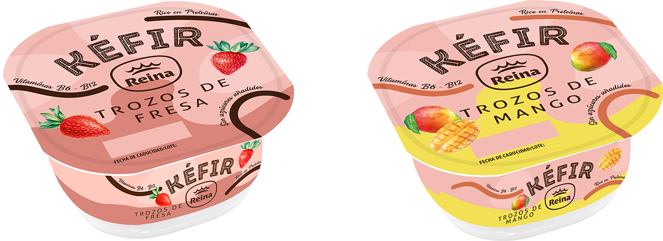 Estas dos nuevas referencias aportan sabores refrescantes a la ya existente gama Reina Kéfir que a partir de ahora contará con cuatro referencias: